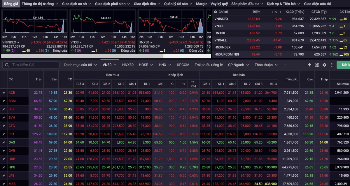 | Đóng cửa tuần giao dịch 26/05 - 30/05, chỉ số VN-Index ở mức 1.332,60 điểm. Ảnh chụp màn hình |