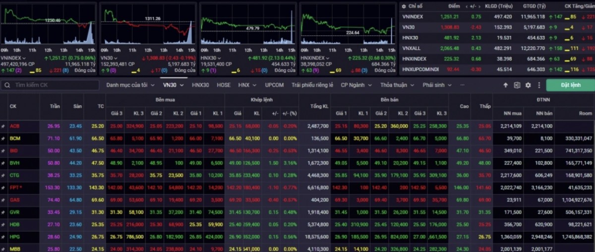 Kết phiên giao dịch ngày 2/12, VN-Index tăng nhẹ 0,75 điểm (0,016) lên 1.251điểm, duy trì trên vùng giá trung bình 20 phiên. Thanh khoản với khối lượng giao dịch trên HOSE giảm -9,16% so với phiên trước, khoảng 65% mức trung bình.