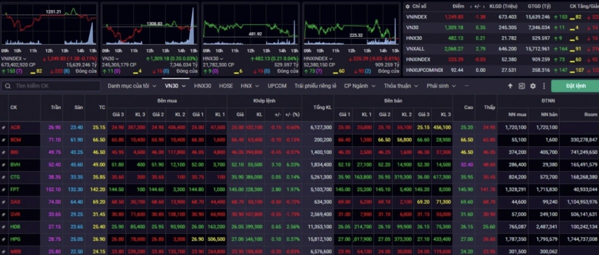Kết phiên giao dịch ngày 3/12, VN-Index giảm -1,38 điểm (-0,11%) về 1.249,83 điểm |