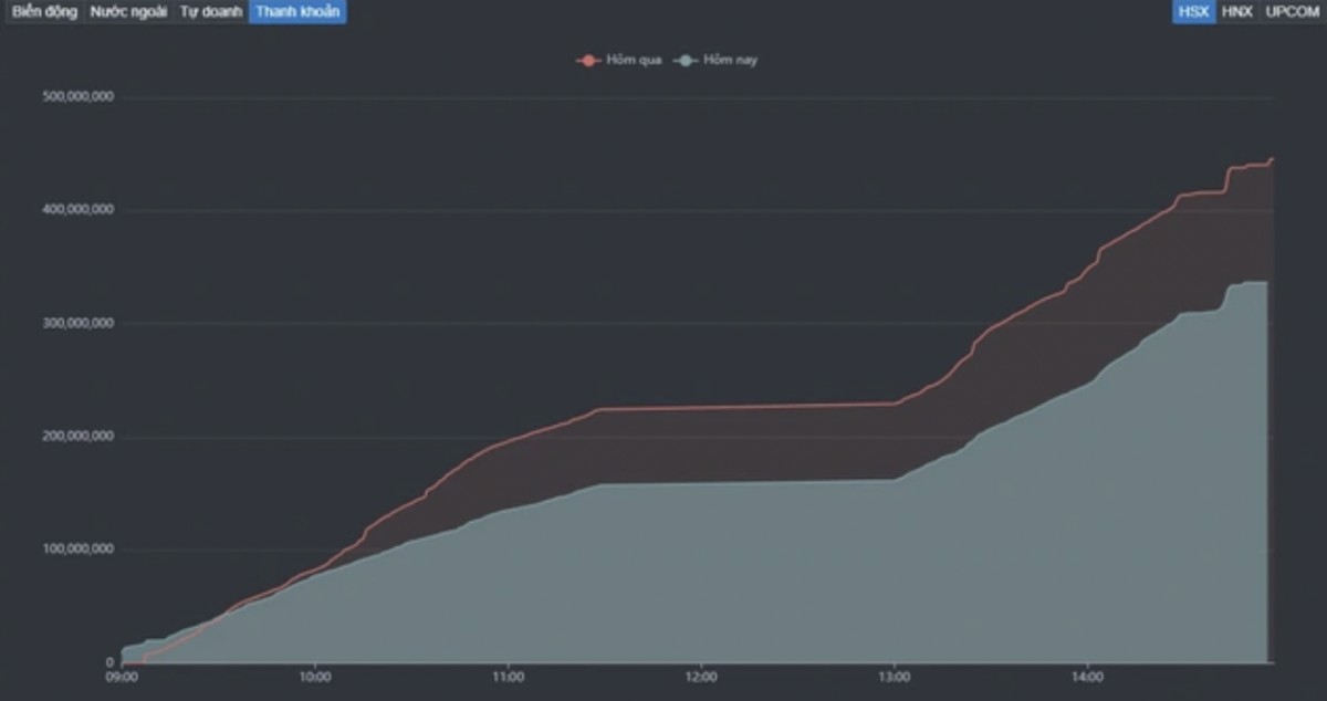 | Thanh khoản VN-Index thấp nhất trong 4 năm trở lại đây. Ảnh chụp màn hình |