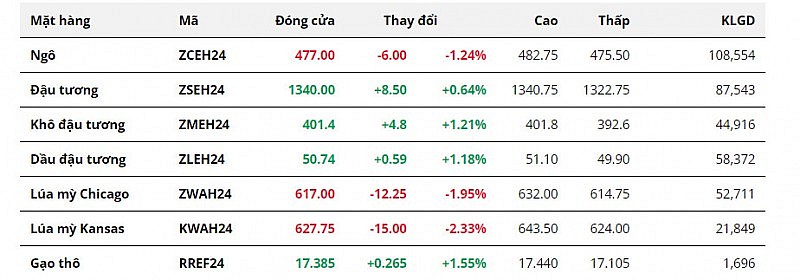Trong khi đó, giá ngô đã sụt giảm hơn 1% trước những lo ngại về khả năng cạnh tranh của ngô Mỹ. Trong 11 tháng đầu năm, nhập khẩu ngô của Trung Quốc đã, tăng 12,3% so với cùng kỳ năm 2022.Tuy nhiên, hầu hết các lô hàng đều đến từ Brazil và Ukraine. Bên cạnh đó, sản lượng nội địa của Trung Quốc cũng được ước tính ở mức kỷ lục 288,84 triệu tấn. Điều này có thể hạn chế nhu cầu của Trung Quốc trong thời gian tới, góp phần tạo sức ép lên giá.