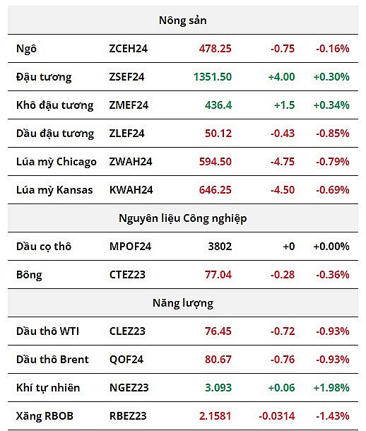 Nhóm nông sản chia hai lửa xanh đỏ, dầu thô suy yếu