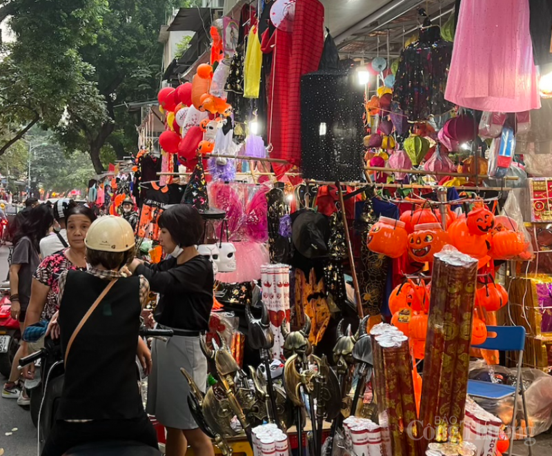 | Ghi nhận thực tế của phóng viên Báo Công Thương tại phố Hàng Mã và Lương Văn Can, các cửa hàng đã bày bán rất nhiều các mặt hàng phục vụ lễ hội Halloween, từ trang phục hóa trang, đến đồ trang trí, đồ chơi… |
