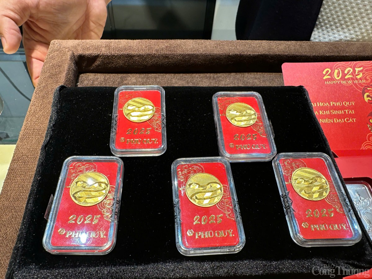 Trong khi đó, Tập đoàn Vàng bạc Phú Quý giới thiệu bộ sưu tập "Ất Tỵ Đắc Lộc" với những sản phẩm vàng 999.9 cao cấp. Nổi bật trong bộ sưu tập này là các sản phẩm mang hình ảnh linh vật của năm mới, khắc họa vẻ đẹp độc đáo của con rắn – biểu tượng của sự linh hoạt, trí tuệ và may mắn.