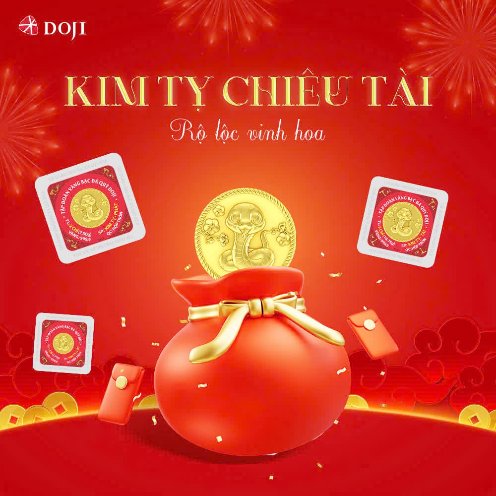 Tập đoàn DOJI cũng không bỏ lỡ cơ hội này khi ra mắt bộ đôi “Đồng vàng Kim Tỵ” gồm hai sản phẩm chủ đạo: “Kim Tỵ Phát Lộc” và “Kim Tỵ Chiêu Tài”, đều được chế tác từ vàng 999.9. Những sản phẩm này mang đậm dấu ấn linh vật của năm Ất Tỵ, thể hiện sự linh hoạt và sức mạnh. Đồng vàng Kim Tỵ được thiết kế với nhiều trọng lượng khác nhau, từ 1 đến 5 chỉ, giúp khách hàng có thể dễ dàng lựa chọn phù hợp với nhu cầu và ngân sách của mình.