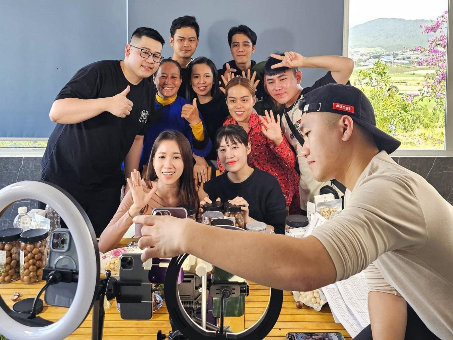 | Các TikToker đang livetream quảng bá và bán nông sản cho bà con nông dân (Ảnh: Tâm An) |