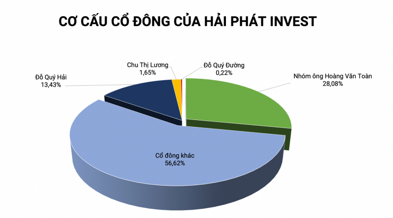Đáng chú ý, sau giao dịch của ông Hoàng Văn Toàn, tỷ lệ sở hữu tại Hải Phát Invest của nhóm cổ đông có liên quan cũng được nâng lên 28,08%. Báo cáo giao dịch ghi nhận, nhóm cổ đông có liên quan đến ông Toàn bao gồm Công ty CP Đầu tư Toàn Tín Phát, hai chị gái là bà Hoàng Thị Ý và Hoàng Thị Như, anh rể là ông Nguyễn Việt Dũng đang nắm giữ 31,1 triệu cổ phiếu HPX, tương đương tỷ lệ sở hữu 11,5%.