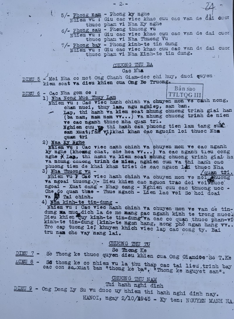 Nghị định số 08-BKT/VP ngày 2/10/1945. Tài liệu do Trung tâm Lưu trữ quốc gia III cung cấp |