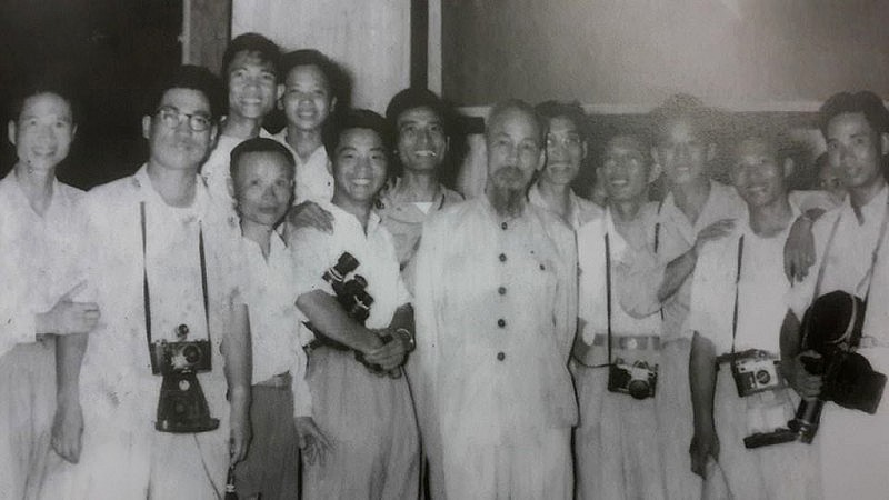 | Chủ tịch Hồ Chí Minh với các đạo diễn, quay phim, diễn viên... tại Xưởng phim Hà Nội - Hãng phim truyện Việt Nam năm 1963 |