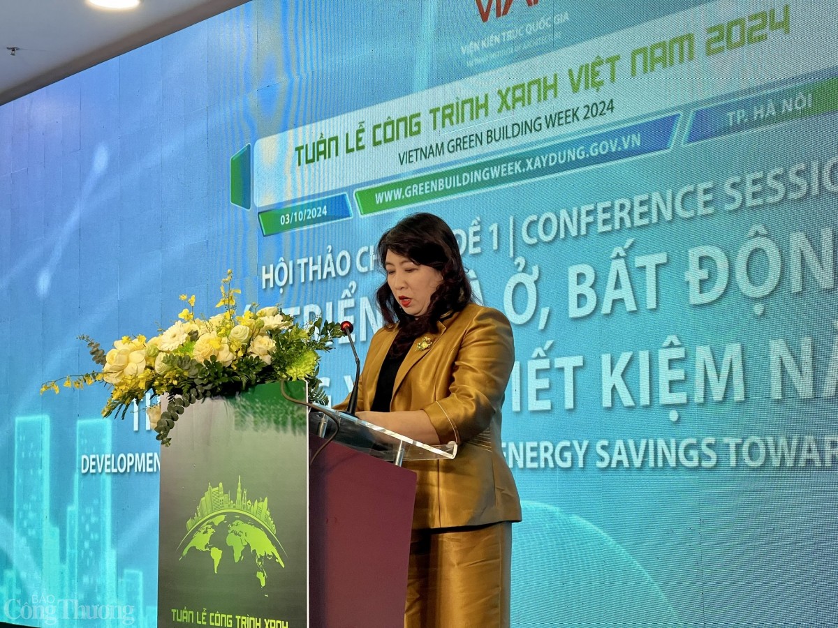 Phát biểu tại Hội thảo, bà Mai Thị Liên Hương, Viện trưởng Viện Kiến trúc Quốc gia nhấn mạnh, ngành xây dựng đóng góp rất lớn vào lượng khí thải carbon liên quan đến năng lượng với hơn 30% lượng khí thải trên toàn cầu, là một tác nhân chính gây biến đổi khí hậu, dẫn đến sự gia tăng của các hiện tượng thời tiết cực đoan như bão, lốc xoáy và giông bão mạnh, điển hình là cơn bão Yagi vừa qua đã gây hậu quả nghiêm trọng đến con người và nhà cửa của người dân các tỉnh phía Bắc.