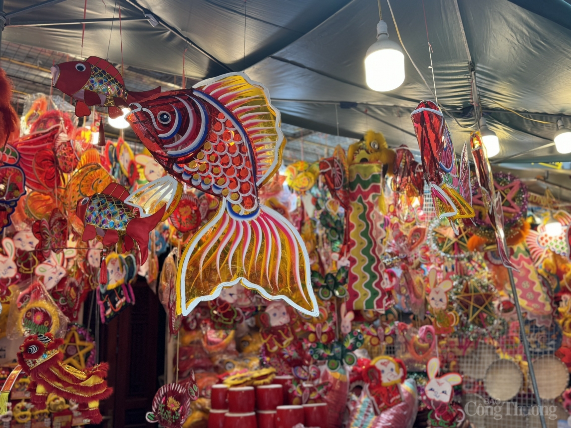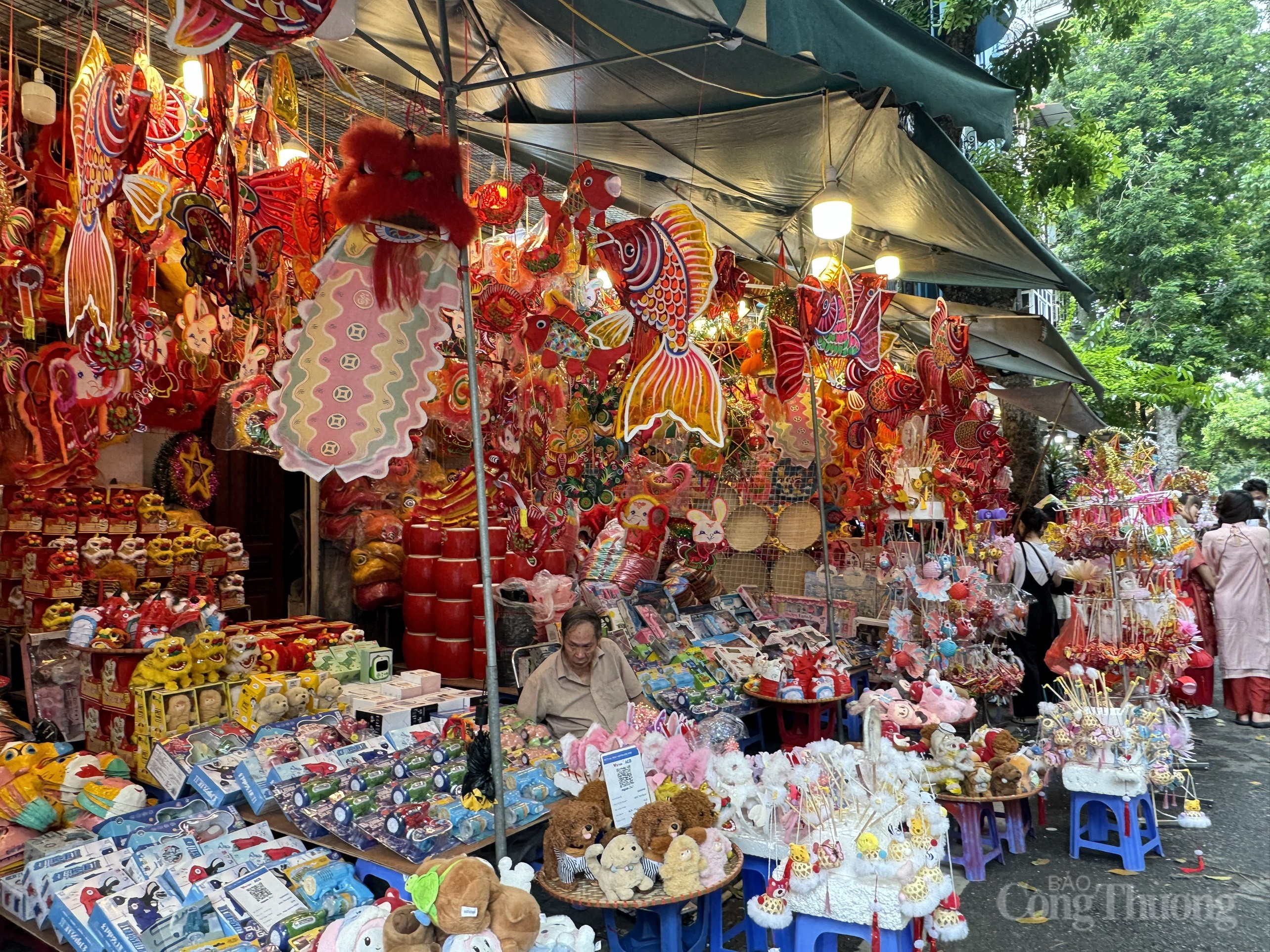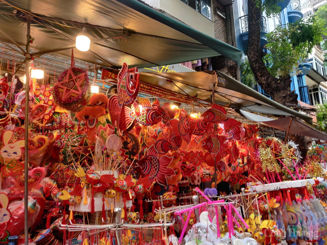 | Tại phố Hàng Mã, rất nhiều mặt hàng đồ chơi truyền thống đã được bày bán. Đèn ông sao, đèn kéo quân... là "thức chơi" được nhiều người tìm đến dịp đặc biệt này |