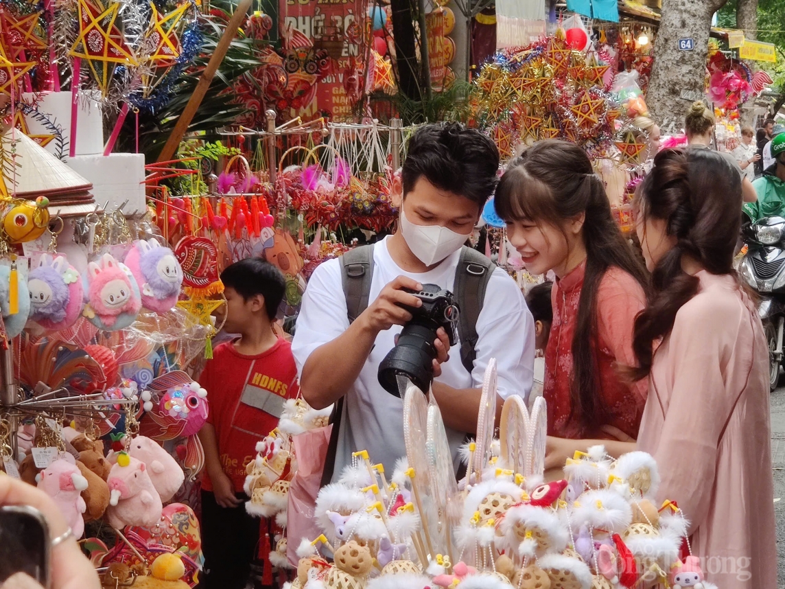 | Nhiều bạn trẻ tranh thủ lên phố Hàng Mã dạo chơi, tận hưởng bầu không khí Trung thu sớm |