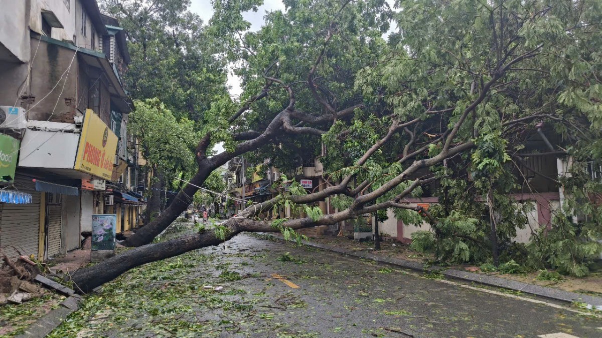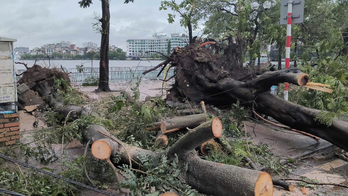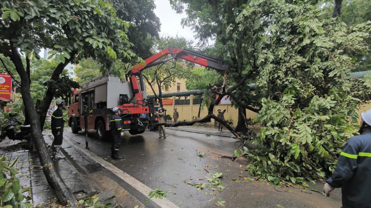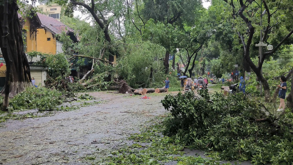 Sau khi bão số 3 quét qua, hệ thống cây xanh của Hà Nội bị ảnh hưởng nghiêm trọng. Thống kê sơ bộ trên toàn thành phố có khoảng gần 3.000 cây xanh bị gãy đổ, gây gián đoạn giao thông. Các lực lượng chức năng đang tích cực khắc phục hậu quả sau cơn bão.