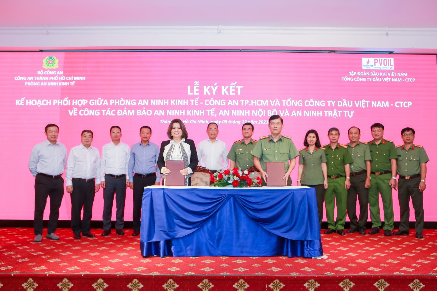 Ngày 08/12/2023, Phòng An ninh Kinh tế - Công an TP. Hồ Chí Minh (CATP) và Tổng công ty Dầu Việt Nam (PVOIL) tổ chức Lễ ký kết “Kế hoạch phối hợp về công tác đảm bảo an ninh kinh tế, an ninh nội bộ và an ninh trật tự”.