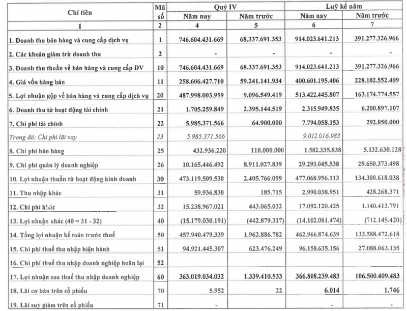 | Doanh nghiệp chưa có giải trình chi tiết về khoản doanh thu và lợi nhuận đột biến trong quý IV/2023 |