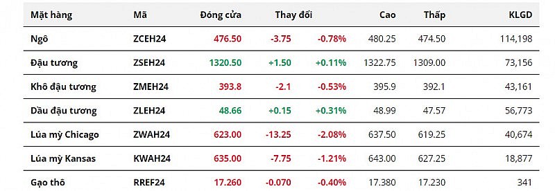 Trong khi đó, thị trường đậu tương cũng diễn biến không quá sôi nổi. Kết phiên, giá hồi phục nhẹ, chỉ 0,11%. Một số dự báo chỉ ra thời tiết tiếp tục bất thường ở Brazil trong tuần cuối cùng của năm 2023. Những rủi ro tiềm ẩn về điều kiện khí hậu đối với mùa vụ tại Brazil là yếu tố thúc đẩy phe mua chiếm ưu thế trong phiên vừa rồi.