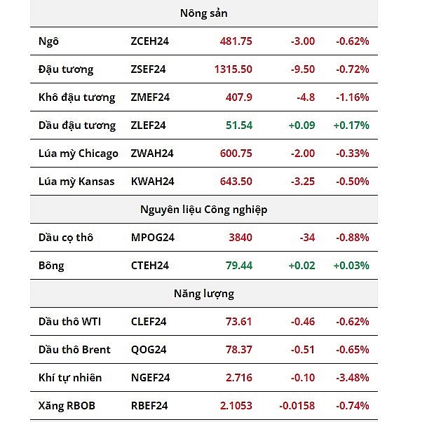 Sắc đỏ áp đảo bảng giá nông sản, giá dầu thô suy yếu