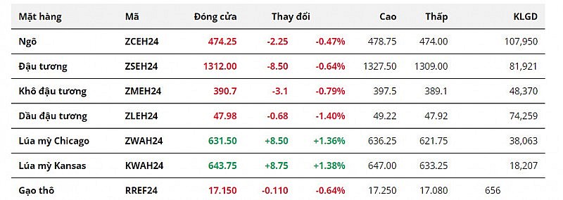 Đối với ngô, giá đóng cửa với mức giảm không đáng kể. Theo dự báo, mưa rào trên khắp miền trung Brazil xuất hiện từ cuối tuần trước đang lan rộng vào cuối tuần này và sang năm mới, giúp cải thiện các điều kiện độ ẩm đất và cây trồng sau giai đoạn hạn hán kéo dài vừa qua. Thị trường sẽ theo dõi thêm tác động cụ thể nhưng đây vẫn là yếu tố tạo sức ép tới giá ngô trong ngắn hạn.