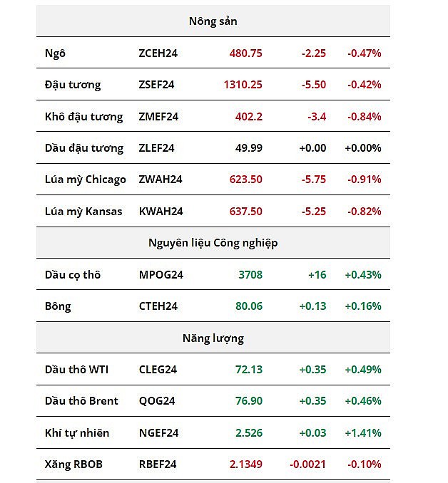 | Sắc đỏ phủ kín bảng giá nông sản, giá dầu thô tiếp tục suy yếuSắc xanh phủ kín bảng giá nông sản, giá bạc bật tăngPhe mua áp đảo bảng giá nông sản, giá dầu thô duy trì đà tăng |