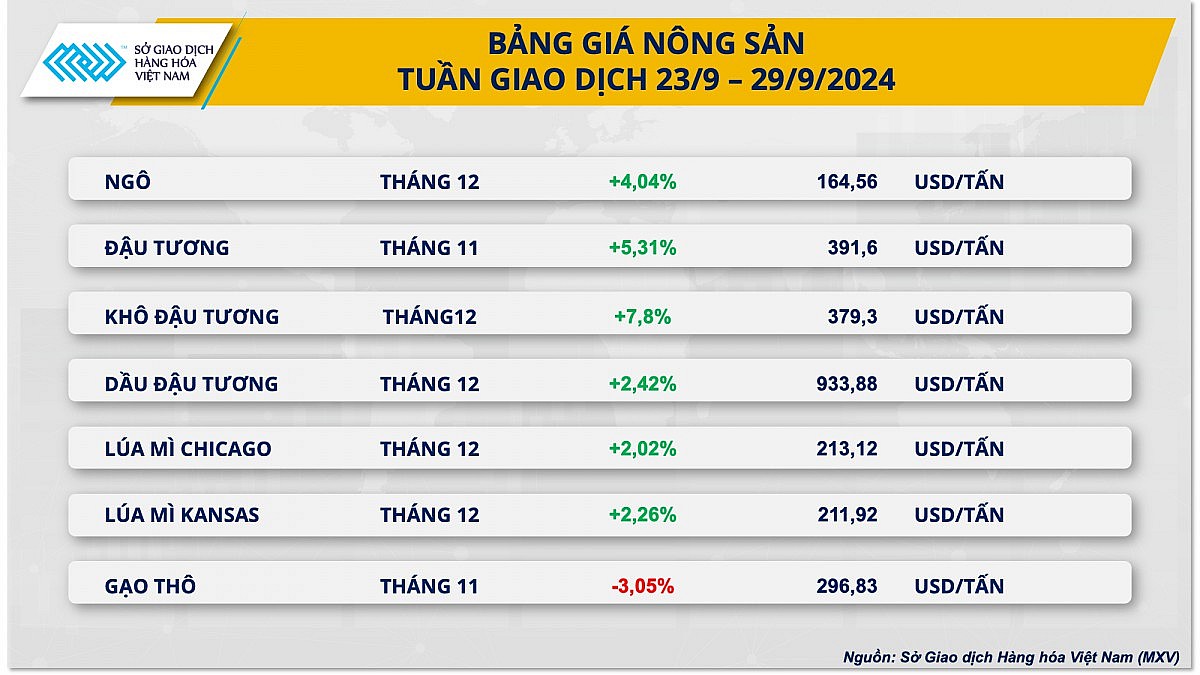 Theo Sở Giao dịch hàng hóa Việt Nam (MXV), giá ngô hợp đồng tháng 12 ghi nhận mức tăng hơn 4%, trong bối cảnh nguồn cung ở khu vực Nam Mỹ bị đe dọa bởi thời tiết.