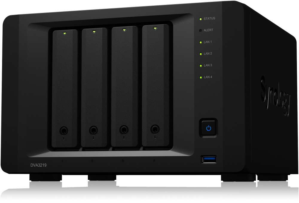 Các tính năng khác của DVA3219 bao gồm: CPU lõi tứ 2.1 GHz và bộ nhớ mặc định DDR4 4GB, có thể mở rộng lên tới 32GB; 4 cổng 1GbE (RJ-45) tích hợp hỗ trợ chuyển đổi dự phòng và liên kết đường truyền; có thể mở rộng tối đa 14 ổ cứng với 2 thiết bị mở rộng Synology DX517; tương thích với hơn 7.100 camera từ hơn 100 thương hiệu nổi tiếng; thiết bị đi kèm licenses để cài đặt camera, mô đun I/O, bộ điều khiển truy cập và thiết bị chuyển đổi.