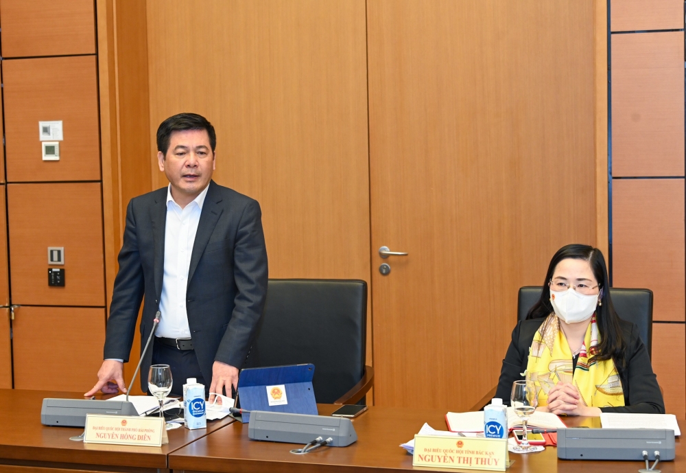 | Bộ trưởng Bộ Công Thương Nguyễn Hồng Diên phát biểu tại phiên họp tổ Quốc hội chiều ngày 4/1 |