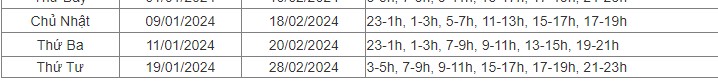 Các ngày khác trong tháng 2 có thể chọn để khai trương mở hàng gồm 18/2/2024 (mùng 9 Tết), 20/02/2024 (ngày 11 âm lịch), 28/2/2024 (ngày 19 âm lịch). (Xem bảng dưới, từ trái sang: ngày âm- ngày dương- giờ khai trương)