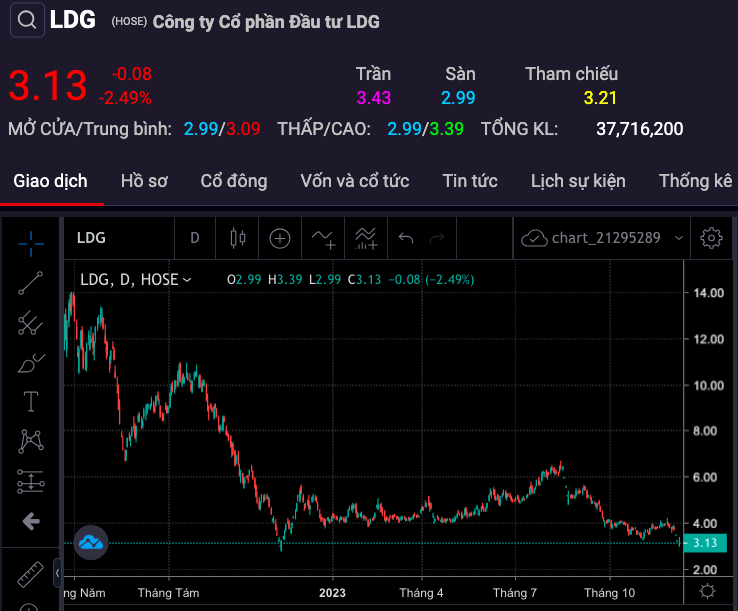 Lũy kế 9 tháng đầu năm 2023, LDG lỗ ròng hơn 209 tỷ đồng, trong khi cùng kỳ lãi hơn 8 tỷ đồng.