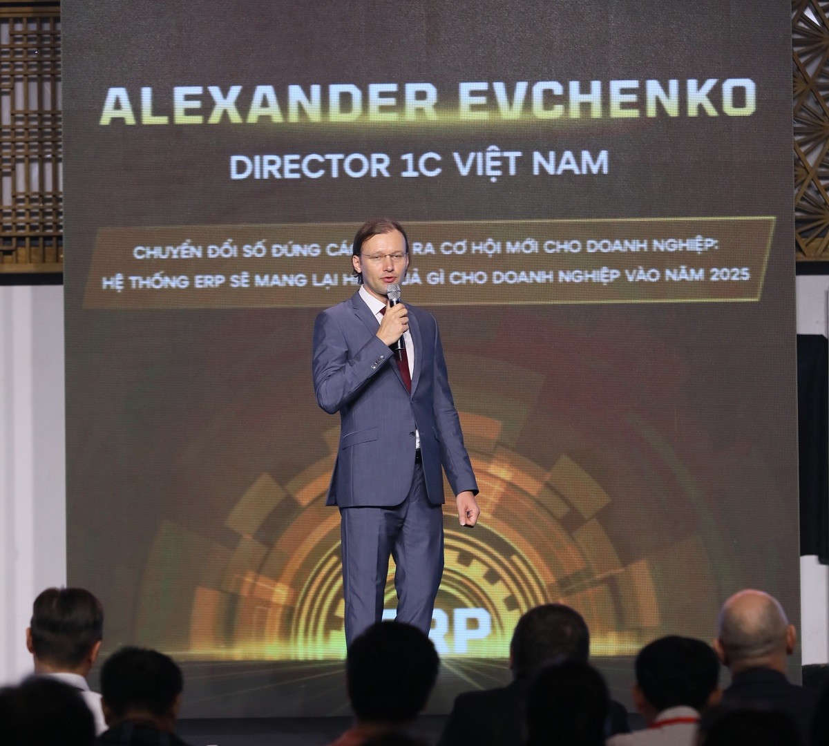 | Ông Alexander Evchenko - Giám đốc 1C Việt Nam trình bày tại hội thảo - (Ảnh: CTV) |