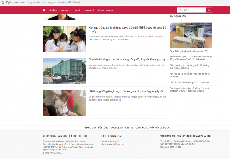 Ngoài các tin, bài nêu trên còn có rất nhiều tin, bài trên 60giay.com có dấu hiệu sản xuất chui, gắn link giả để qua mặt cơ quan quản lý, như: “Bệnh viện Đa khoa tỉnh Bình Dương lên tiếng vụ đau ruột thừa nhưng cắt buồng trứng” đăng tải vào lúc 12 giờ 40 phút ngày 16/7/2023; “Xác định nguyên nhân người phụ nữ tử vong trong quán cà phê” đăng tải lúc 14 giờ 05 phút ngày 16/7/2023; “Bé trai 12 tuổi được các bác sĩ nối lại đầu sau vụ tai nạn ô tô” đăng tải lúc 9 giờ 42 phút ngày 16/7/2023…