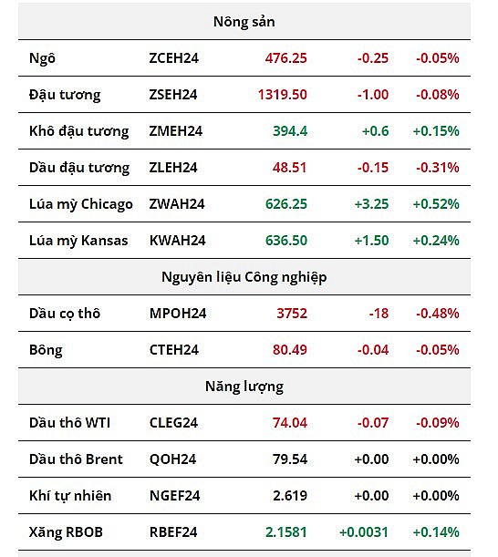Thị trường nông sản chia hai nửa xanh đỏ, giá dầu thô suy yếu