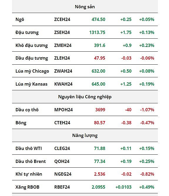 Giá ngô (ZCEH24 +0,11%) hồi phục nhẹ trong phiên sáng nay, với sự thúc đẩy đến từ triển vọng nhu cầu tại Mexico. Cụ thể, UNTA cho biết, sản lượng ngô của nước này đã sụt giảm 40% trong năm nay do ảnh hưởng của hạn hán nghiêm trọng và chính sách hỗ trợ nông nghiệp hạn chế. Điều này làm tăng khả năng đối tác nhập khẩu ngô số 1 của Mỹ sẽ phải mua ngũ cốc nhiều hơn từ thị trường bên ngoài trong thời gian tới, đồng thời hỗ trợ giá CBOT.