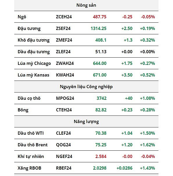 Giá dầu (CLEF24 +1,5%) nhận được lực mua tích cực trong phiên sáng sau động thái kêu gọi tất cả các thành viên OPEC+ tham gia thỏa thuận cắt giảm sản lượng của Saudi Arabia và Nga. Ngoài ra, hãng thông tấn nhà nước Iraq (INA) dẫn lời bộ trưởng dầu mỏ Iraq Hayan Abdel-Ghani cho biết, Iraq tiếp tục ủng hộ thỏa thuận OPEC+ và cam kết cắt giảm sản lượng dầu tự nguyện, đồng thời cho biết thêm quyết định của Iraq nằm trong khuôn khổ nỗ lực chung để đạt được sự cân bằng và ổn định của thị trường dầu.