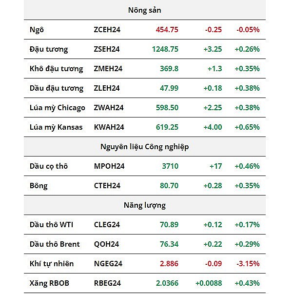 Giá dầu (CLEG24 +0,17%) phục hồi nhẹ trong phiên sáng do đồng USD tiếp tục suy yếu làm giảm chi phí nắm giữ so với các đồng tiền thương mại khác. Tuy nhiên, đà phục hồi có thể sẽ hạn chế trong bối cảnh nhu cầu trì trệ vẫn đang là mối lo ngại lớn của thị trường. Francisco Blanch, trưởng bộ phận hàng hóa và phái sinh toàn cầu tại BofA Global Research, cho biết nguồn cung gia tăng mạnh mẽ, trong khi nhu cầu yếu là các yếu tố khiến BofA cắt giảm dự báo giá dầu Brent trong năm 2024 xuống còn 80 USD/thùng và giá dầu WTI xuống còn 75 USD/thùng. Trong khi đó, Patrick De Haan, trưởng bộ phận phân tích xăng dầu tại GasBuddy cho biết giá xăng toàn quốc của Mỹ có thể giảm xuống dưới 3 USD/gallon lần đầu tiên kể từ năm 2021 do nhu cầu yếu.