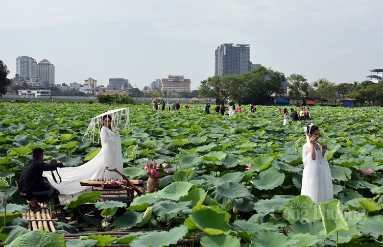 Vào những ngày cao điểm, đầm sen Hồ Tây đón hàng trăm khách, đặc biệt các ngày cuối tuần có lúc lên tới vài nghìn lượt khách ra vào mỗi ngày. Thực sự đây cũng là thời điểm mùa "bội thu" của chủ đầm, thợ ảnh cũng như các dịch vụ như cho thuê trang phục, trang điểm...