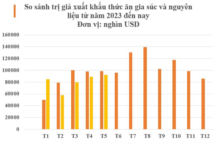 Theo số liệu của Tổng cục Hải quan, xuất khẩu thức ăn chăn nuôi và nguyên liệu của Việt Nam trong tháng 5 đạt 92,34 triệu USD, tăng 3,4% so với tháng 4/2024. Lũy kế trong 5 tháng đầu năm 2024, xuất khẩu nhóm hàng thức ăn chăn nuôi và nguyên liệu đạt trên 403,71 triệu USD, giảm 5,3% so với 5 tháng đầu năm 2023.