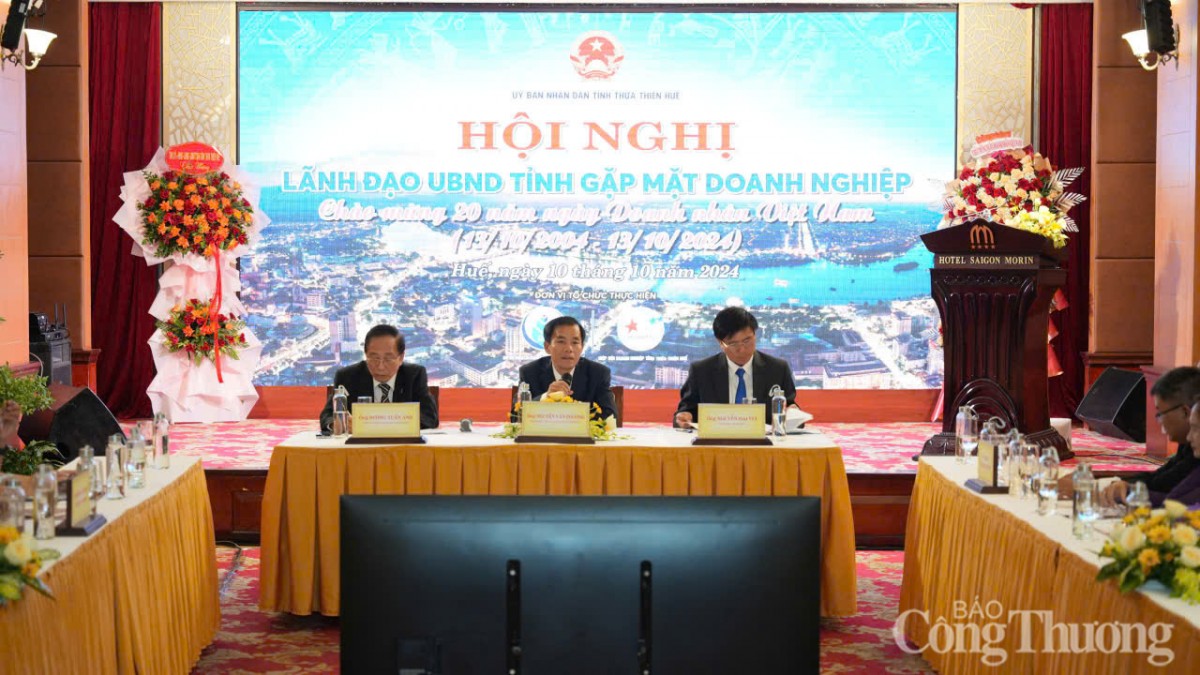 | Chủ tịch UBND tỉnh Thừa Thiên Huế chủ trì phần trao đổi, tháo gỡ khó khăn, vướng mắc của doanh nghiệp |