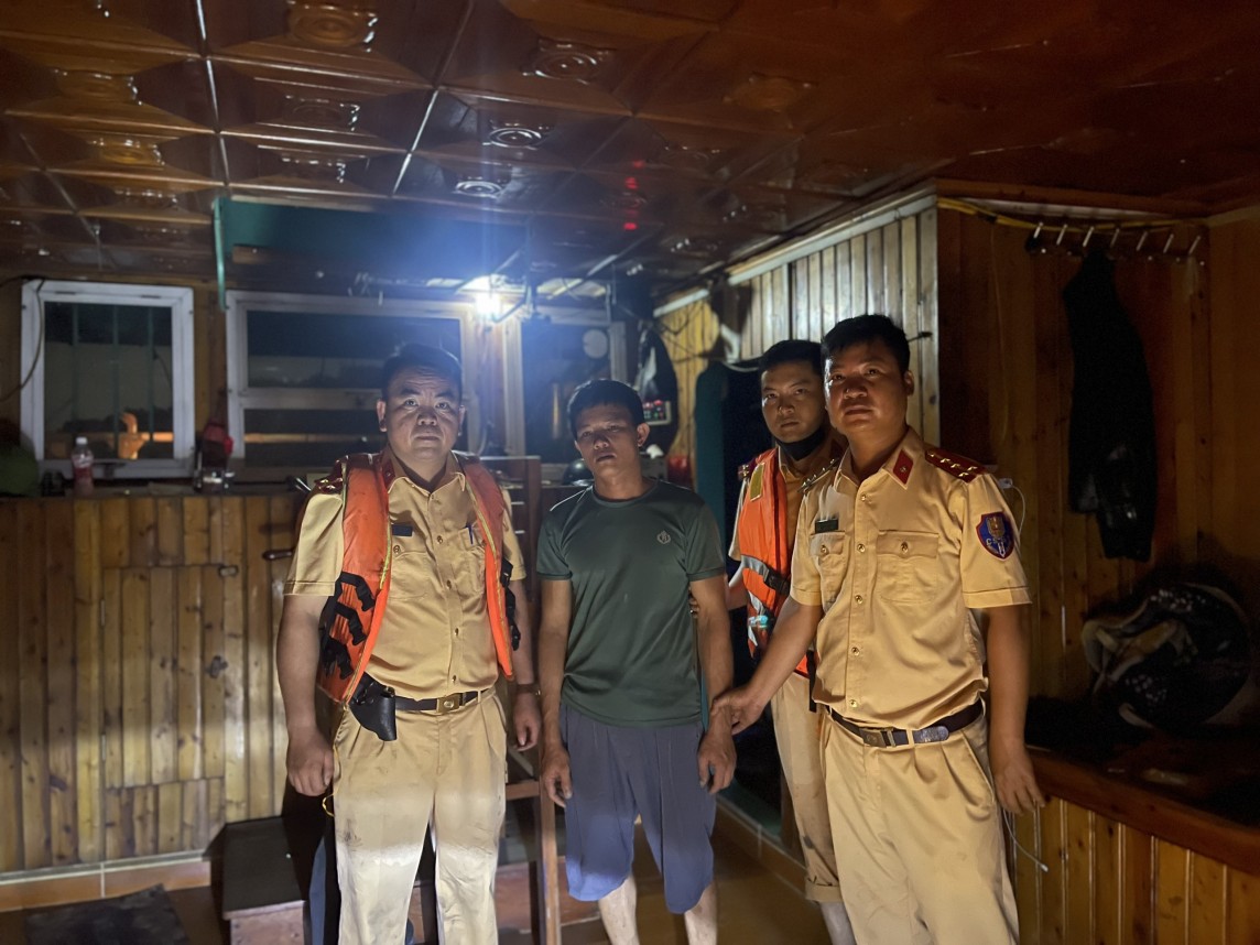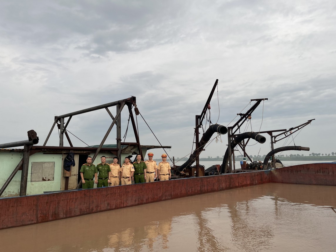 Qua kiểm tra, phương tiện hút không kẻ, gắn biển kiểm soát, không có đăng kiểm VR theo quy định. Trên tàu có Nguyễn Văn Khánh (SN 1986, trú tại Duy Tiên, Hà Nam) không xuất trình được giấy tờ liên quan đến người lái, phương tiện, giấy phép khai thác khoáng sản. Hai người còn lại là anh Bến, anh Quyết đã bỏ chạy lên bờ.