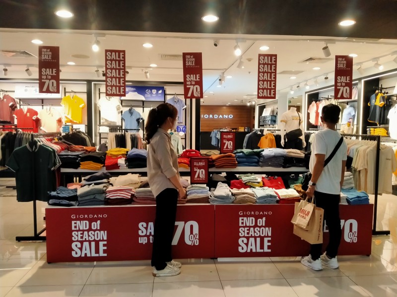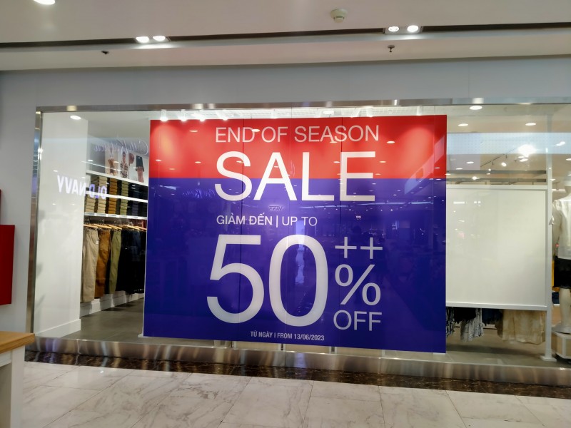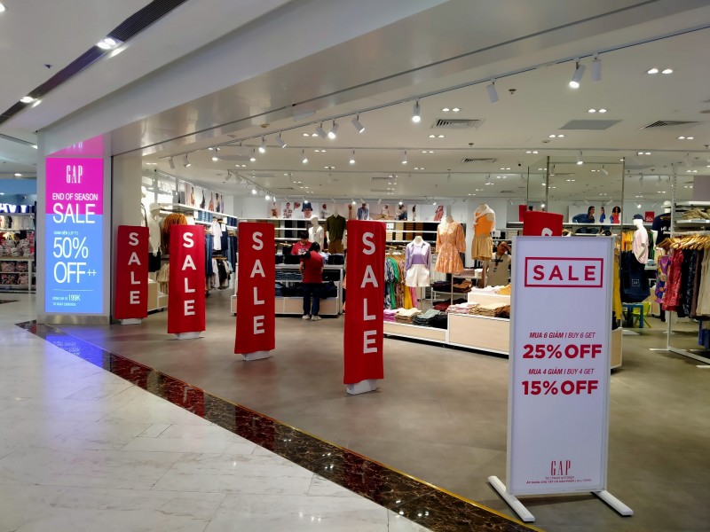 Hầu hết các cửa hàng tại các trung tâm thương mại đều treo biển giảm giá sâu để thu hút khách mua sắm |