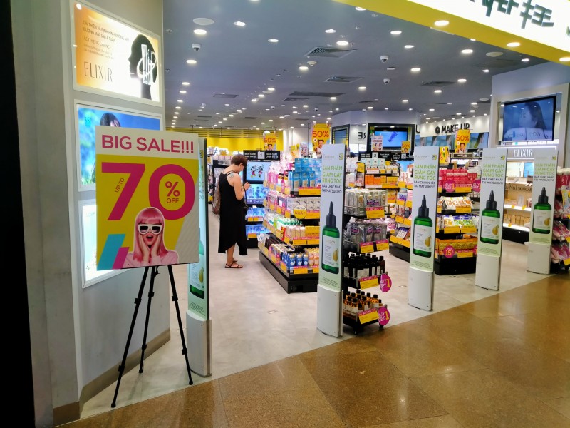 | Hàng hóa mỹ phẩm giảm giá mạnh tại các cửa hàng |