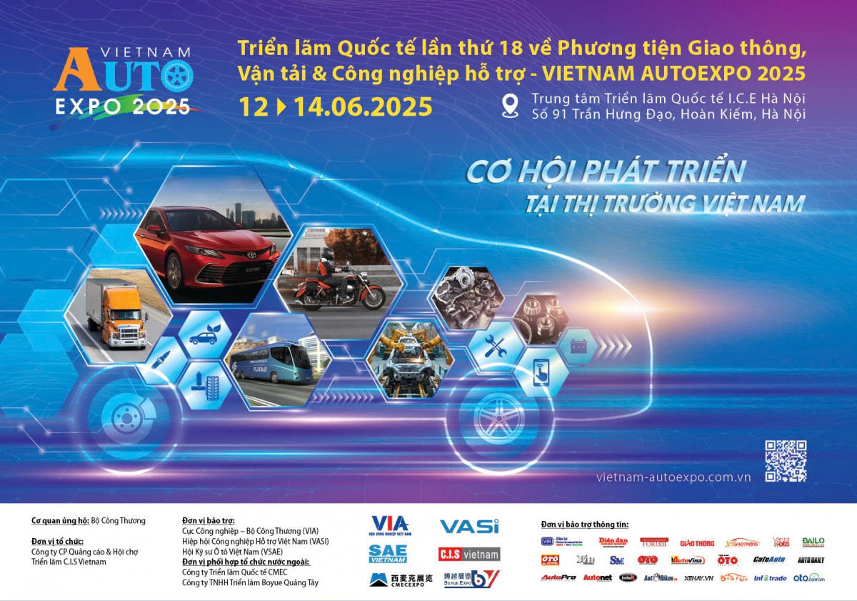 Triển lãm quốc tế lần thứ 18 về phương tiện giao thông, vận tải và công nghiệp hỗ trợ - Vietnam AutoExpo 2025 được sự ủng hộ của Bộ Công Thương, chương trình do Cục Công nghiệp (VIA) - Bộ Công Thương, Hiệp hội Công nghiệp Hỗ trợ Việt Nam (VASI), Hội Kỹ sư ôtô Việt Nam (VSAE) bảo trợ và Công ty Quảng cáo và Hội chợ Triển lãm C.I.S Vietnam tổ chức sẽ diễn ra từ ngày 12 đến 14/06/2025 tại Trung tâm Triển lãm quốc tế I.C.E, Cung Văn hóa Hữu nghị, Hà Nội.