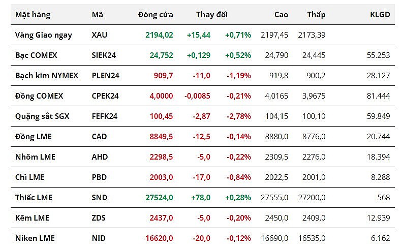 Đối với kim loại cơ bản, giá đồng COMEX tiếp tục trải qua một phiên giao dịch giằng co do thông tin cơ bản đang khá trái chiều. Chốt phiên, giá đồng neo tại mức 4 USD/pound sau khi giảm 0,21%.