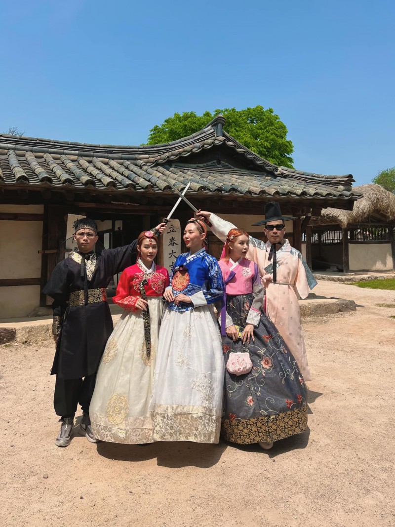 | Bức ảnh tạo dáng hầm hố với trang phục truyền thống của Hàn Quốc khiến dân mạng thích thú |