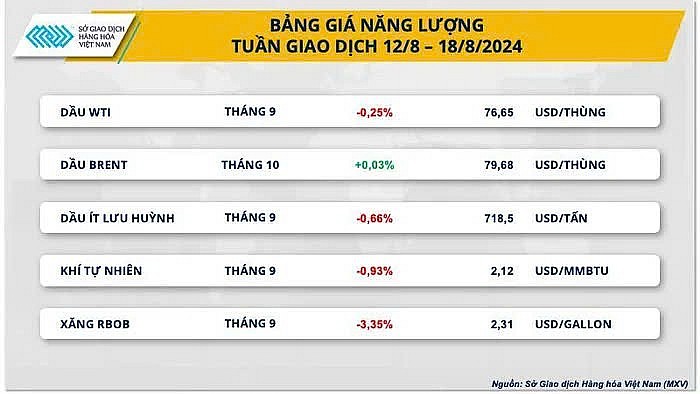 Theo Sở Giao dịch hàng hóa Việt Nam (MXV), giá dầu WTI giảm nhẹ 0,25% về mức 76,65 USD/thùng. Dầu Brent gần như đi ngang so với tuần trước kết thúc với mức 79,68 USD/thùng. Một loạt dữ liệu kinh tế tích cực của Mỹ đã góp phần nâng đỡ giá dầu, nhưng áp lực tồn kho bên cạnh nhu cầu suy yếu của Trung Quốc đã cản đà tăng của giá.