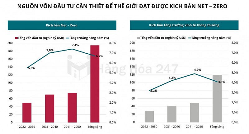 Trong quá trình chuyển đổi sang một thế giới trung hòa carbon, một trong những thách thức lớn nhất mà các quốc gia gặp phải đó chính là chi phí đầu tư lớn. Theo báo cáo của BloombergNEF, quá trình chuyển đổi sang một thế giới không phát thải ròng đòi hỏi một khoản đầu tư khổng lồ trị giá gần 200.000 tỷ USD vào năm 2050, hay gần 7.000 tỷ USD mỗi năm. Nói một cách có thể so sánh, con số này tương đương với tổng lợi nhuận doanh nghiệp và 1/2 tổng doanh thu thuế toàn cầu vào năm 2020.