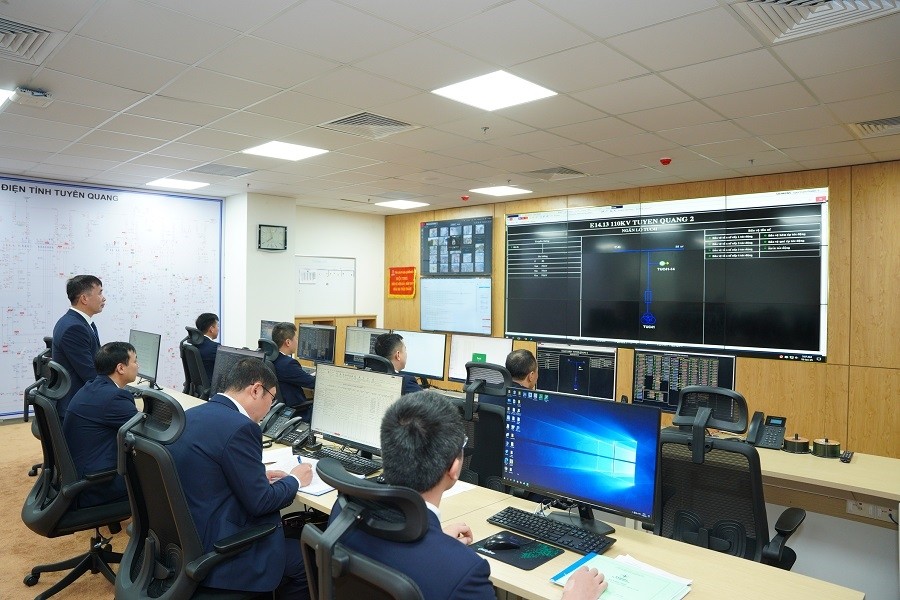 | Trung tâm điều khiển xa Công ty Điện lực Tuyên Quang trực 24/24 đảm bảo cung cấp điện trên địa bàn. (Ảnh: PC Tuyên Quang) |