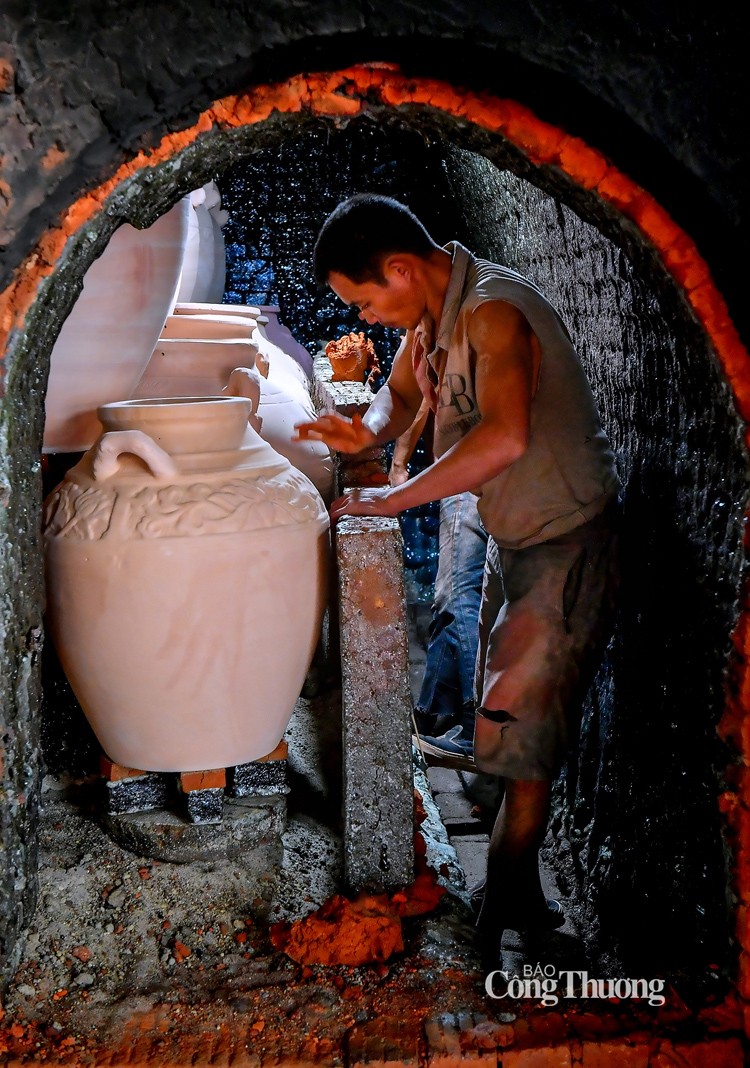 Công đoạn cuối là nung sản phẩm ở nhiệt độ cao, thường là từ 1.300 đến 1.400 độ C, từ 4 tiếng đến 5 tiếng tùy theo sản phẩm. Vì là gốm nặng lửa nên lò ở đây đều được đốt bằng củi (hoặc bằng ga). Trong quá trình đốt, người nghệ nhân cần điều lửa để cho các lưỡi lửa đi chính vào đầu, cuối hay giữa lò tại từng thời điểm. Mỗi loại củi đốt lại cho ra những màu sắc của men khác nhau vì khi đốt chúng có nhiệt độ khác nhau và những lớp bụi hoa từ củi bắn ra cũng là yếu tố quan trọng để những điểm nhấn trên lớp men cũng theo đó mà hình thành.
