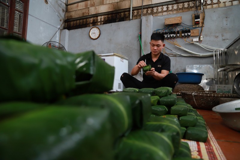 Tiếp nối nghề cha ông để lại, anh Nguyễn Văn Sơn (Chủ xưởng bánh chưng Phong Sơn - Đội 1, Tranh Khúc, Duyên Hà, Thanh Trì) cũng đã lớn lên cùng với nghề làng. “Từ bé tôi đã được ông bà, cha mẹ chỉ cách làm và có thể tự gói được bánh chưng từ hồi còn học tiểu học. Nếu tính tuổi nghề chắc cũng phải hơn 30 năm rồi”, anh Sơn chia sẻ.