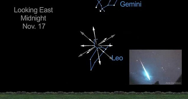 Nếu bạn không may lỡ trận mưa sao băng lần này, bạn có thể chờ đợi thêm vài tuần nữa để chiêm ngưỡng trận mưa sao băng Leonids. Leonids được tạo ra bởi các hạt bụi do sao chổi Tempel-Tuttle để lại, được phát hiện vào năm 1865. Trận mưa sao diễn ra hàng năm từ ngày 06-30/11. Cực đại của năm nay là vào đêm 17, rạng sáng ngày 18/11 với khoảng 15 vệt sao băng mỗi giờ.