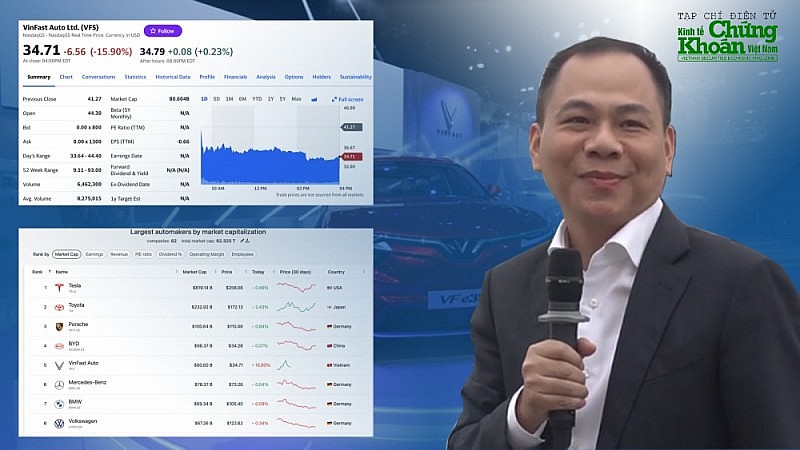 Với thị giá hiện tại, vốn hoá thị trường của VinFast chỉ còn 95,83 tỷ USD, chưa bằng một nửa giá trị của Toyota – “đối thủ” mà hãng xe điện Việt từng bám đuổi vô cùng sít sao trước đó. Đến thời điểm này, VinFast đã tụt 2 bậc trên bảng xếp hạng các nhà sản xuất ô tô có giá trị nhất thế giới, xuống vị trí thứ 5, xếp sau Porsche và BYD.